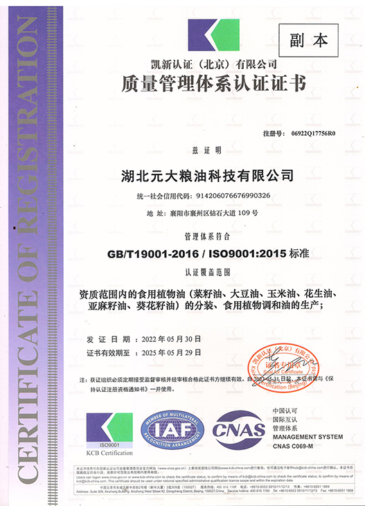 2022年9001质量管理体系证书