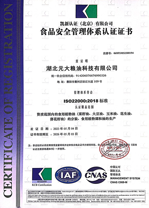2023年22000食品安全管理体系证书