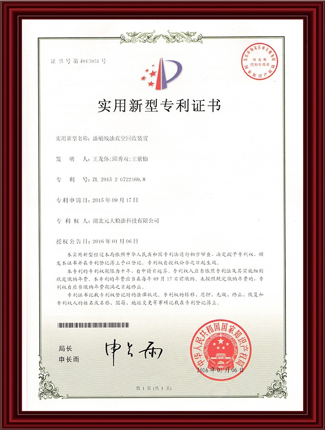 实用新型专利-油桶残油真空回收装置
